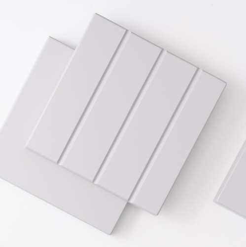 Sample of RETRO LINES type front in light grey, made exactly the way your lacquered front will be made. Sample size 15x15cm, thickness 18mm.