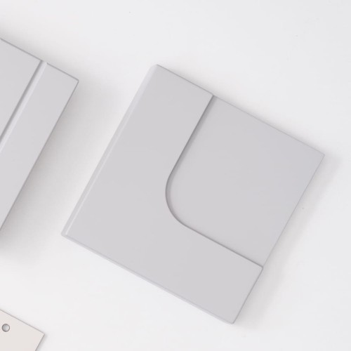 Échantillon de façade de type RETRO couleur light grey, réalisée de la même manière qu’une façade laquée. Dimensions de l’échantillon : 15 x 15 cm, épaisseur : 18 mm.